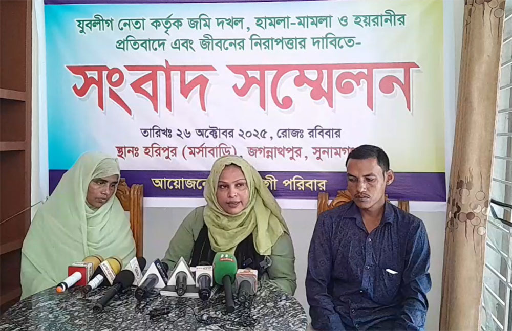 জগন্নাথপুর (সুনামগঞ্জ) প্রতিনিধি: সুনামগঞ্জের জগন্নাথপুরে এক যুবলীগ নেতার বিরুদ্ধে যুক্তরাজ্য প্রবাসী পরিবারের জমি জোরপূর্বক দখল ও হয়রানীর অভিযোগ করেছে একটি পরিবার। রোববার (২৬ অক্টোবর) উপজেলার আশারকান্দি ইউনিয়নের হরিপুর নিজ বাড়িতে সংবাদ সম্মেলন করে এসব অভিযোগ করেছে ভুক্তভোগী পরিবার। সংবাদ সম্মেলনে লিখিত বক্তব্যে ভূক্তভোগী হামিদা আক্তার বলেন, ‘আমি ও আমার পরিবারের Details..