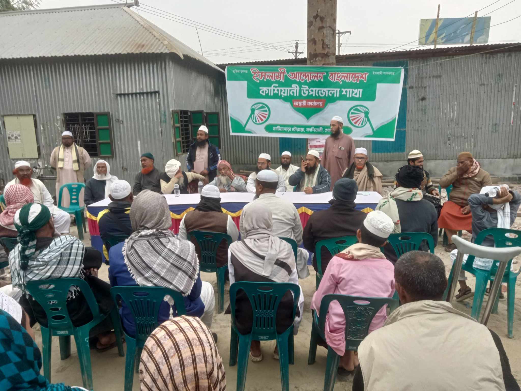 ইসলামী আন্দোলনের কাশিয়ানী শাখার সভাপতি আব্দুল মান্নান খাকির সভাপতিত্বে বক্তব্য রাখেন জেলা শাখার যুগ্ম সাধারণ সম্পাদক নুর ইসলাম শেখ লেলিন, কাশিয়ানী শাখার সহ-সভাপতি হাফেজ নুর মোহাম্মাদ, জাতীয় ওলামা মাশায়েখ আইম্মা পরিষদের গোপালগঞ্জ জেলা শাখার সহ-সভাপতি মাওলানা আমিনুল ইসলাম, ইসলামী শ্রমিক আন্দোলনের কাশিয়ানী শাখার সভাপতি আলমগীর শেখ, পোনা মাদ্রাসার মোহতামিম হাফেজ আবু মুছা, বাংলাদেশ জামায়াতে ইসলামীর কাশিয়ানী উপজেলা আমির মো. রেজাউল করিম, ইসলামী আন্দোলনের কাশিয়ানী শাখার শাখার সাংগঠনিক সম্পাদক মো. কারিমুল মৃধা। এ সময় বাংলাদেশ ইসলামী আন্দোলন ও সহযোগি সংগঠনের শতাধিক নেতাকর্মীরা উপস্থিত ছিলেন।