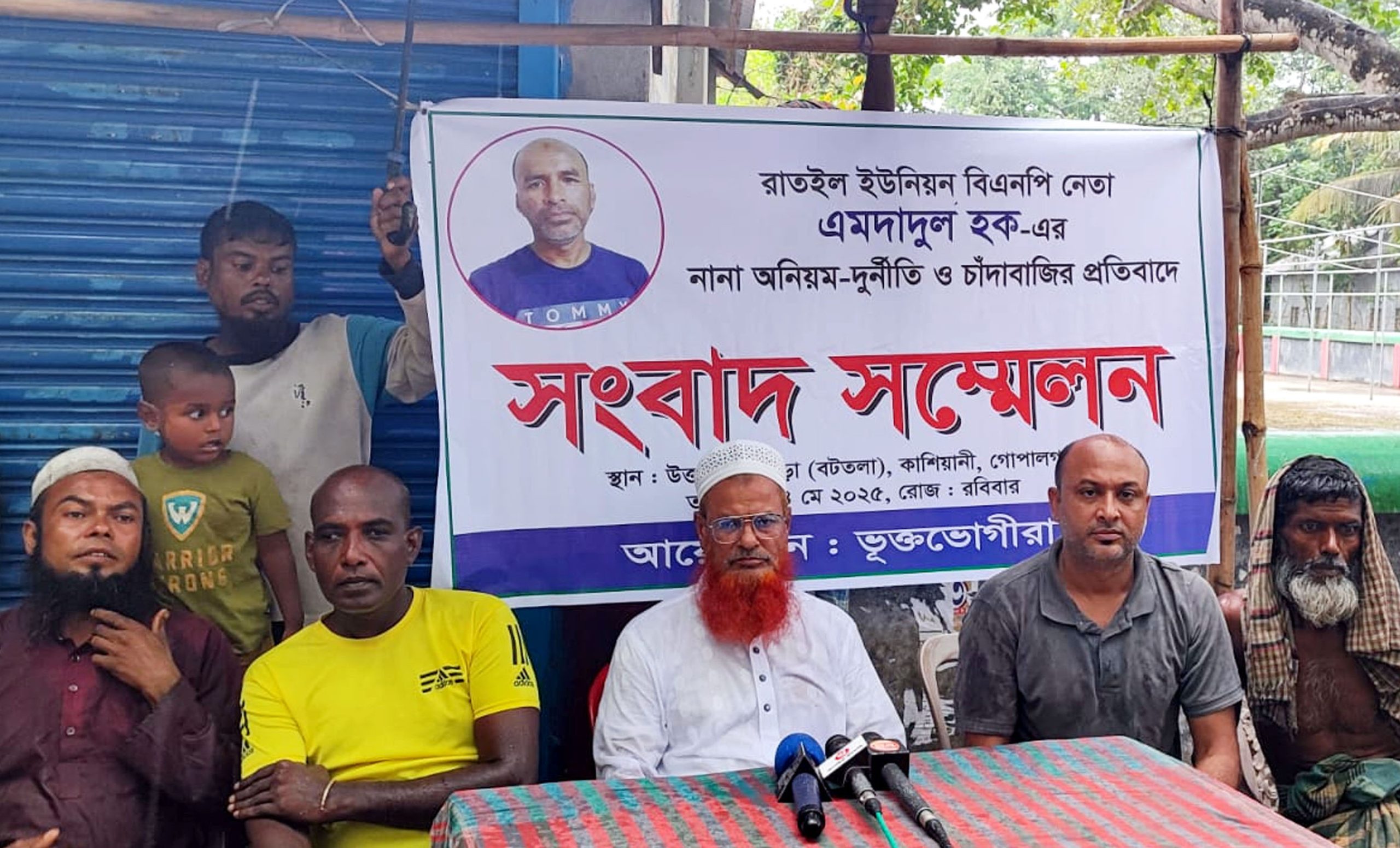 কাশিয়ানী (গোপালগঞ্জ) সংবাদদাতা: গোপালগঞ্জের কাশিয়ানী উপজেলার রাতইল ইউনিয়ন বিএনপির আহ্বায়ক কমিটির সদস্য সচীব এমদাদুল হক ও তার বাহিনীর বিরুদ্ধে চাঁদাবাজি, হামলা, লুটপাট ও সাধারণ মানুষের ওপর নির্যাতনের অভিযোগ উঠেছে।